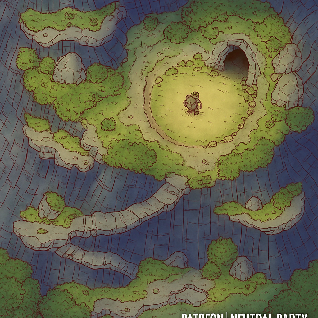 Pod převisem je temná štěrbina částečně krytá křovím, které se zachytilo ve skalních puklinách. Před vchodem je malá skalní plošina, na které jsou rozházené kosti a cáry oblečení. Některé kosti jsou zjevně zvířecí, ale pozorný pozorovatel mezi nimi najde i lidské. Ve vzduchu je cítit pach rozkladu a psí strst. Z výšky sem doléhá skřehotání krkavců, kteří krouží nad převisem.