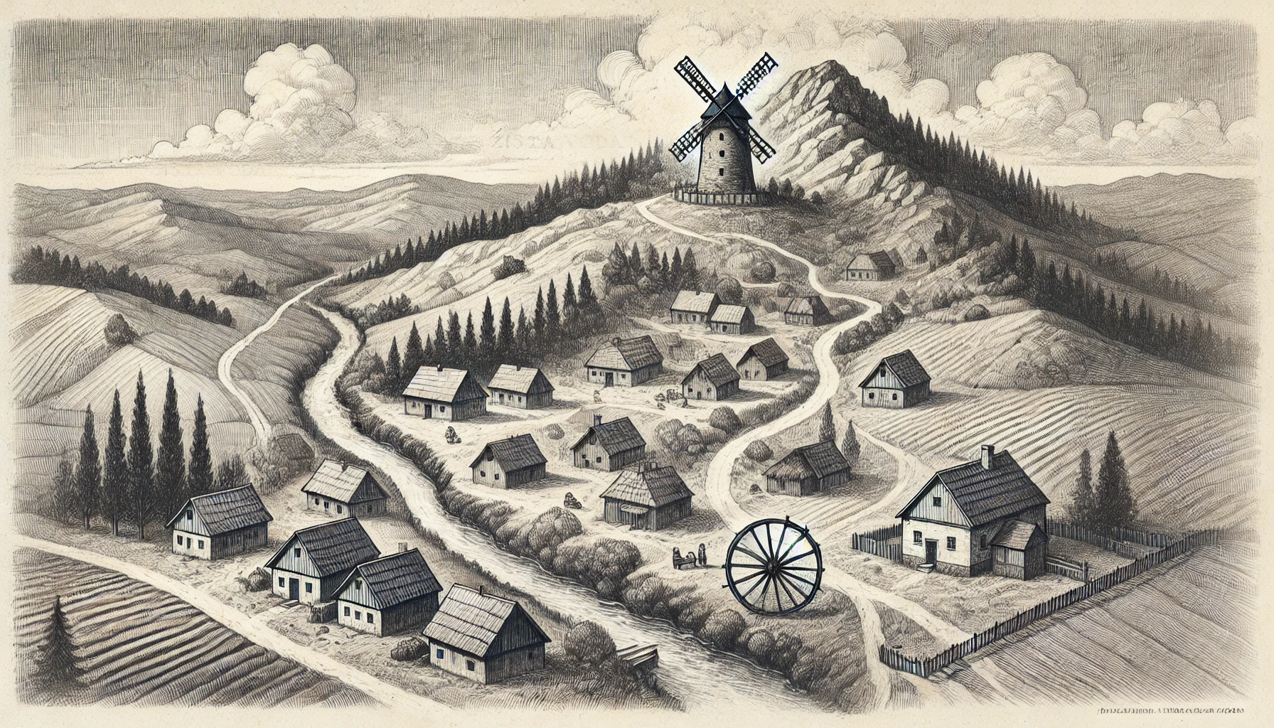 K dispozici máme dva obrázky vesnice nebo mapu, ale chatgpt ji nikdy nevygeneroval správně. Varianta 1 a varianta 2.